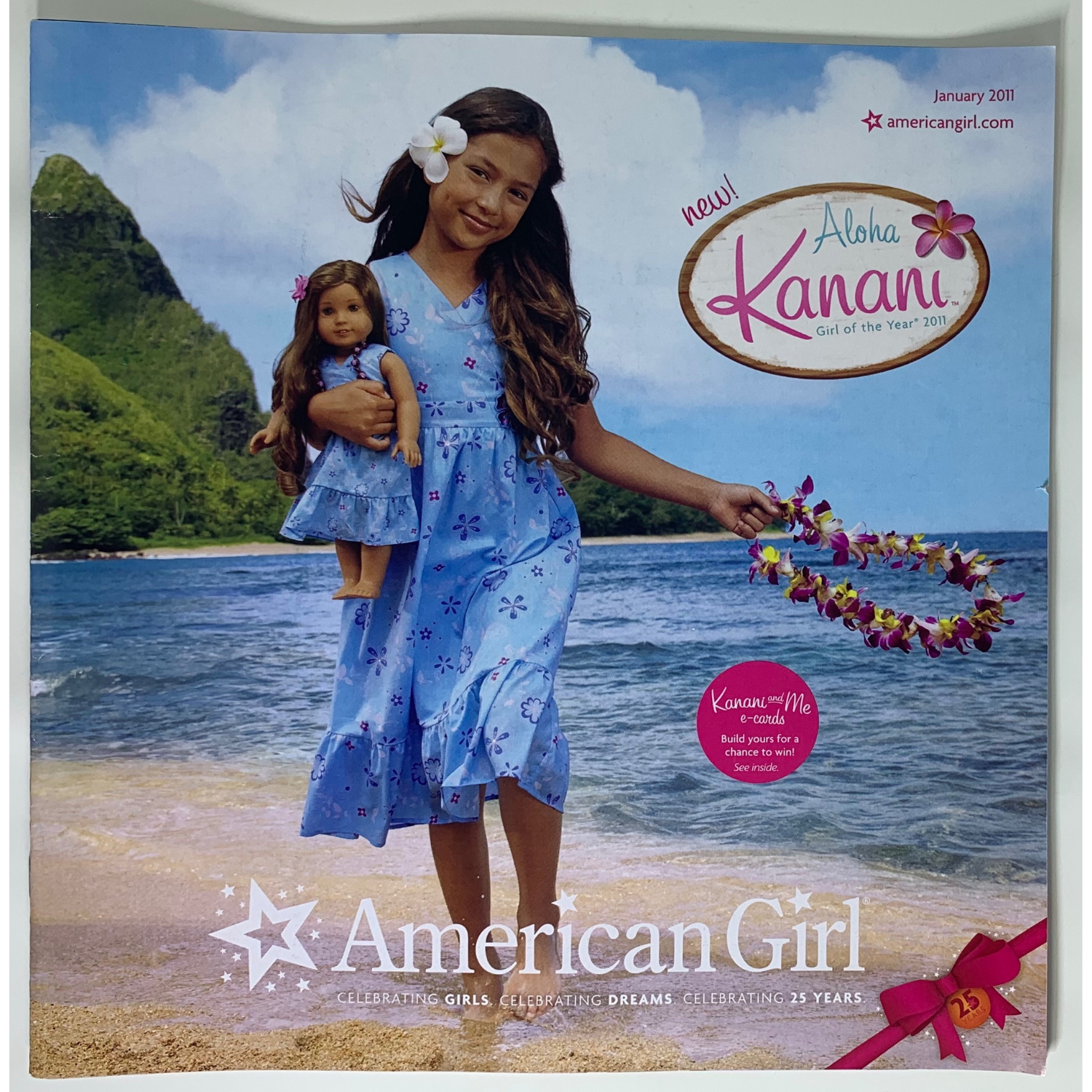 This American Girl catalogue features the newest American Girl Girl of the Year, Kanani Akina. It also announces American Girl’s 25th anniversary which included special edition mini dolls and a special birthday cruise.